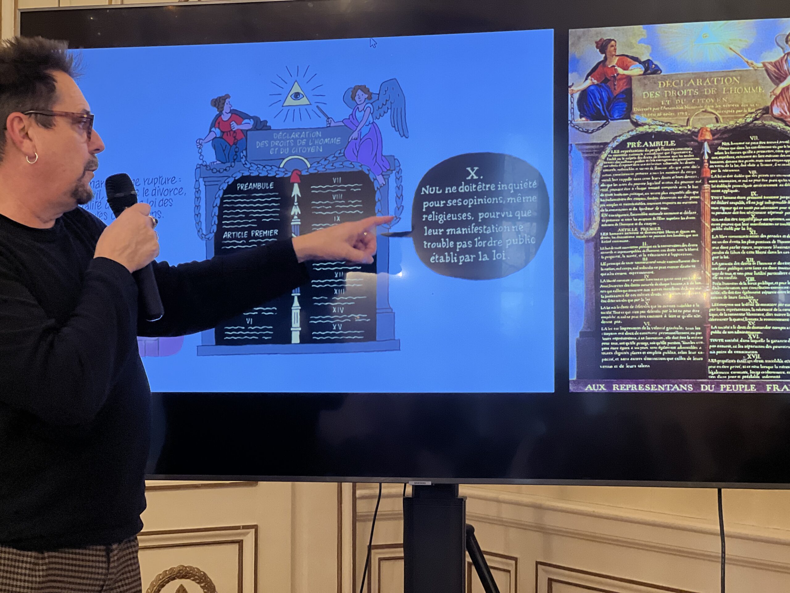 Bruno Genini, directeur de la Maison de la BD, a présenté deux bandes dessinées traitant de la laïcité :