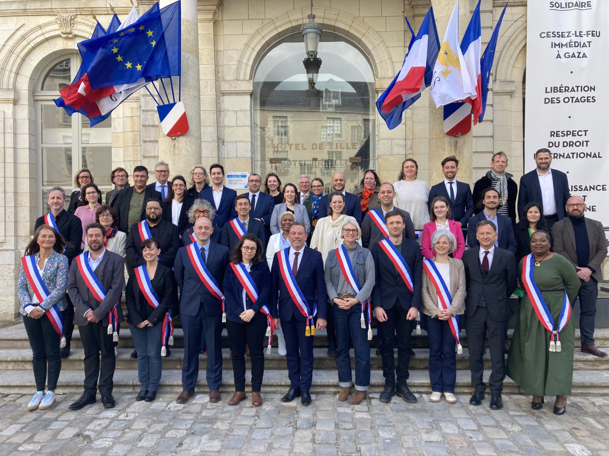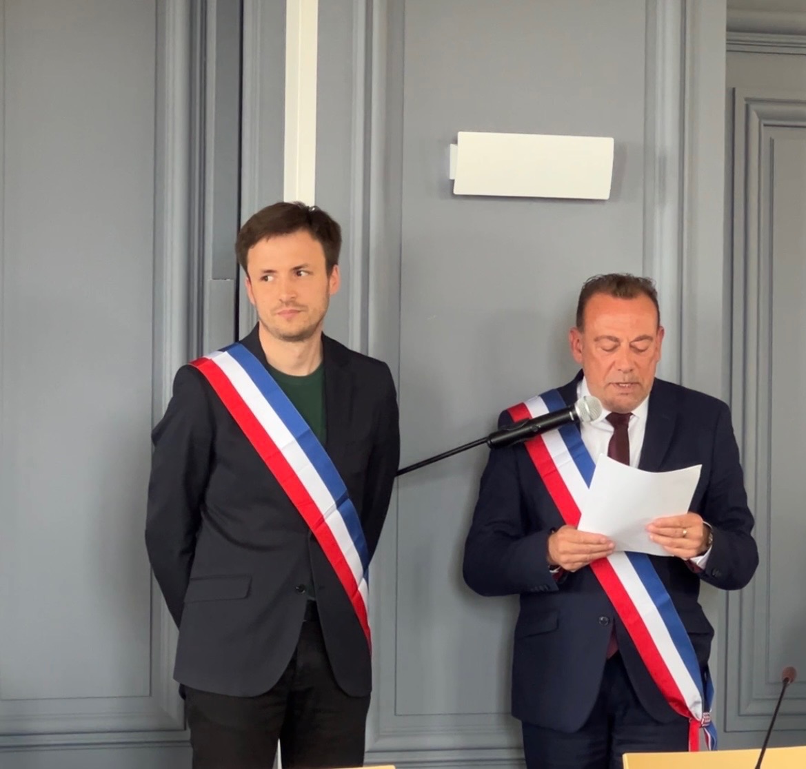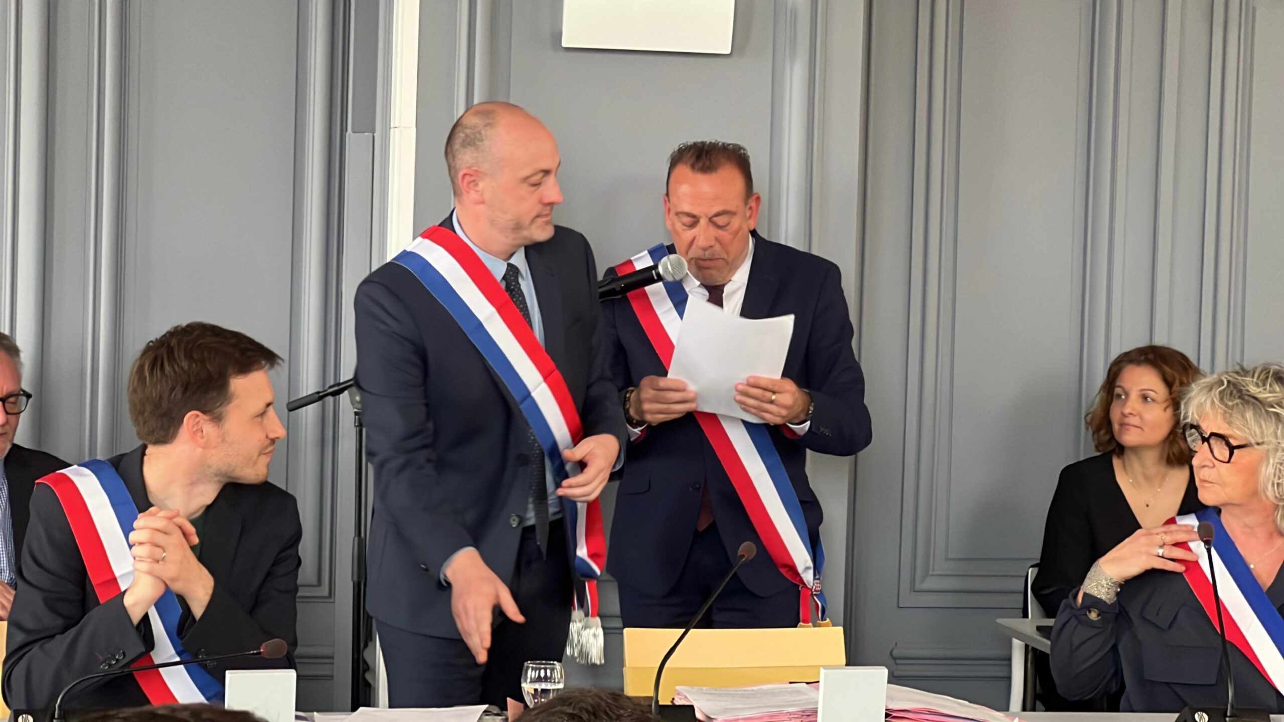 Les quarante-trois conseillers municipaux ont pris place, tous présents pour cette séance d’installation. Moment solennel : quatorze d’entre eux ont reçu leur écharpe tricolore des mains du maire. Un à un, Marc Gricourt les a appelés, ouvrant la liste avec le premier adjoint à la vie durable, Nicolas Orgelet, suivi de la deuxième adjointe en charge des solidarités, Corinne Garcia.