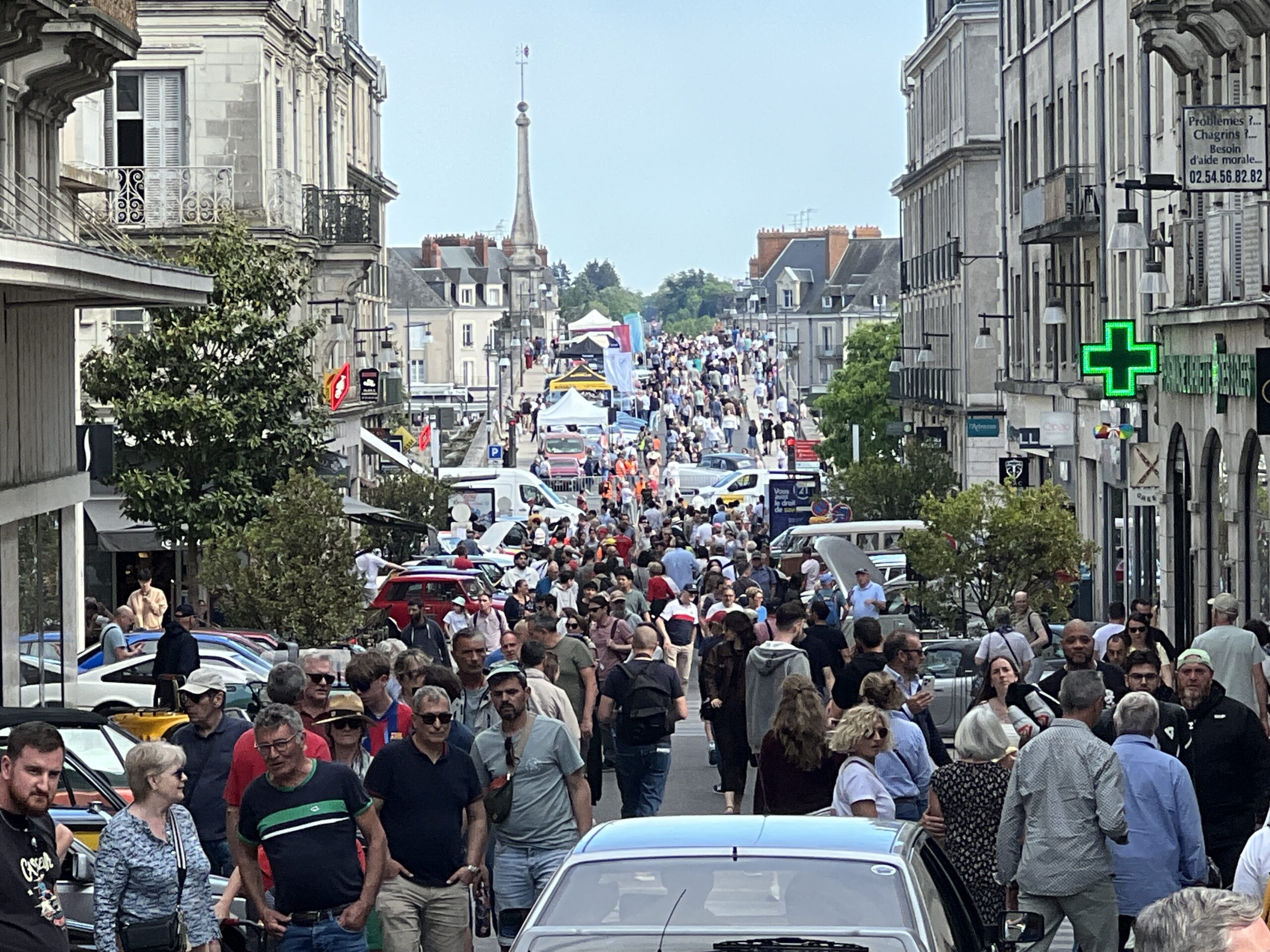 Une foule compacte a littéralement investi la rue Denis-Papin et le pont Jacques-Gabriel pour applaudir le passage des voitures anciennes lors de cette 10e édition du Bouchon de Blois.